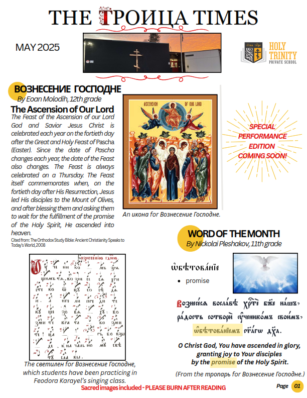 May 2025 Student Newsletter Want to See More? May 2025 PrintablePrevious: Пасха 2025 Tags: 2024-2025 School YearStudent Newsletter Share this post Share on FacebookShare on Facebook Share on XShare on X